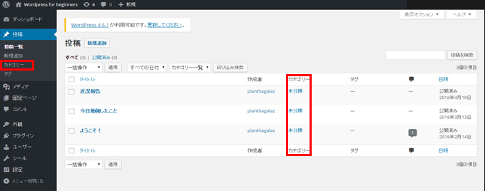 現在どの記事もカテゴリが「未分類」になっていますね。