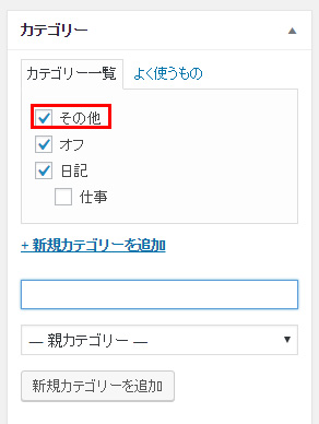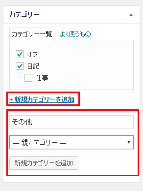 カテゴリ欄に「新規カテゴリーを追加」という欄があります。ここをクリックします。